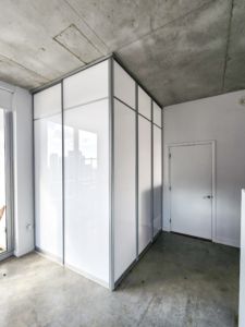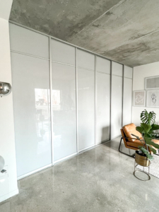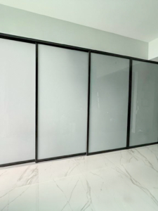 Not only does the track system contribute to the rooms’ appeal, but various glass options allow just the right amount of light to illuminate the beauty of the space they occupy. Choose amongst multiple types of glass, from clear glass to frosted, white, or black, and we have a variety of colored glass and wood. Don’t miss out hte oportunity to fin more about our commercial solutions.